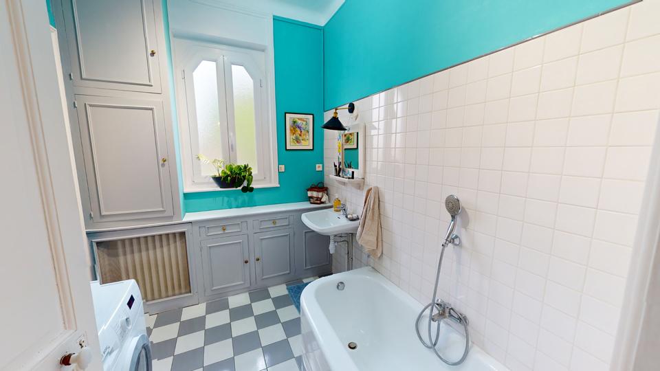 | Salle de bains (baignoire d'angle / douche / double vasque) / WC | 12 m² |